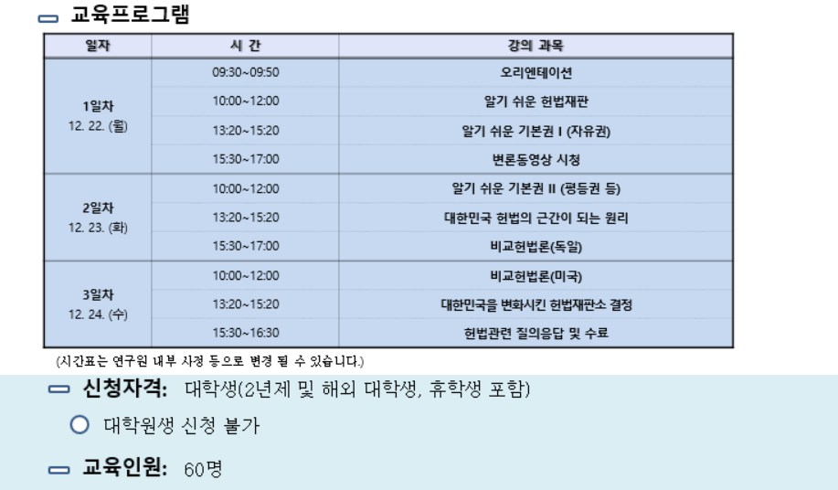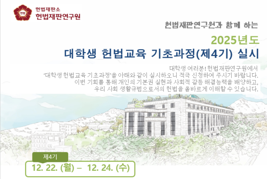 2025년도 대학생 헌법 기초교육 제4기 교육생 모집 안내